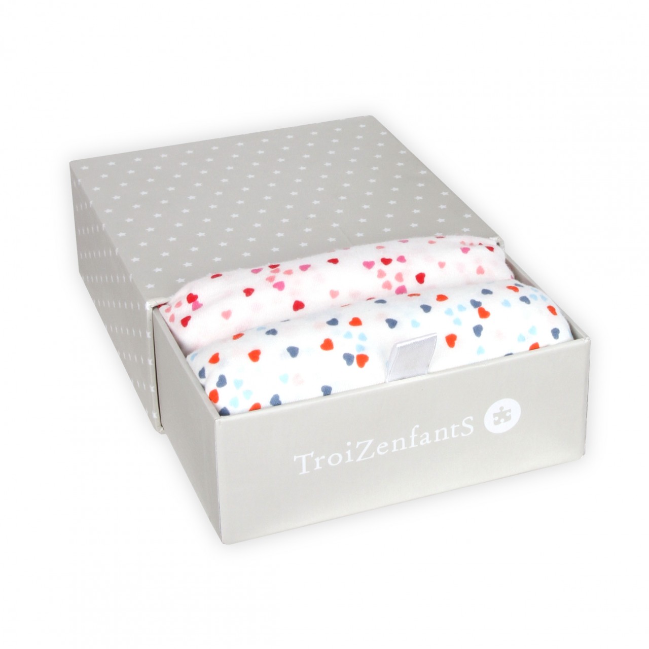 Pack of two bodysuit. US neckley, Short sleeves. Press-stud fastening inside the legs. Those are deliver in nice TroiZenfantS light grey box.