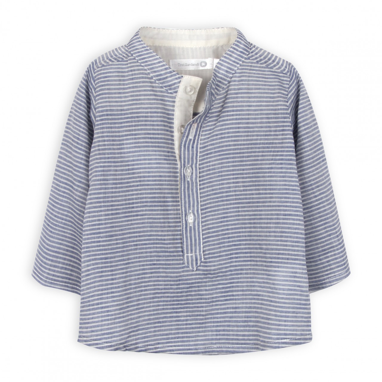 Look chic and casual this summer with this magnificent, madarin collar cotton shirt! Cut for convenience and easy to pull on with three buttons down the front! Long sleeves. A must!