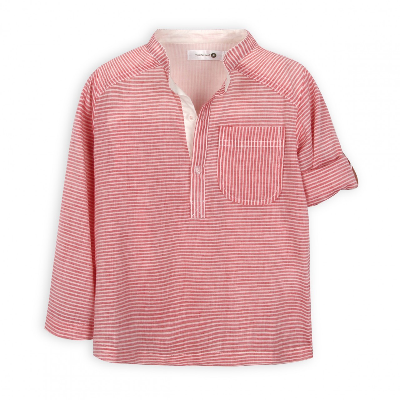 Look chic and casual this summer with this magnificent, mandarin collar cotton shirt! Cut for convenience and easy to pull on with three buttons down the front! Long or short sleeves with buttoned flap. A must!